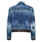 Distressed Blue Denim Jacket Unisex with Leather Bottom Line and Leather Cuff OEM ODM Suppliers