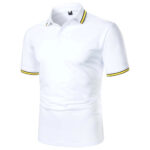 Mens Classic Cotton Piqué Golf Polo Shirt with Contrast Tipped Collar Split Hem Tailored Fit Office Wear