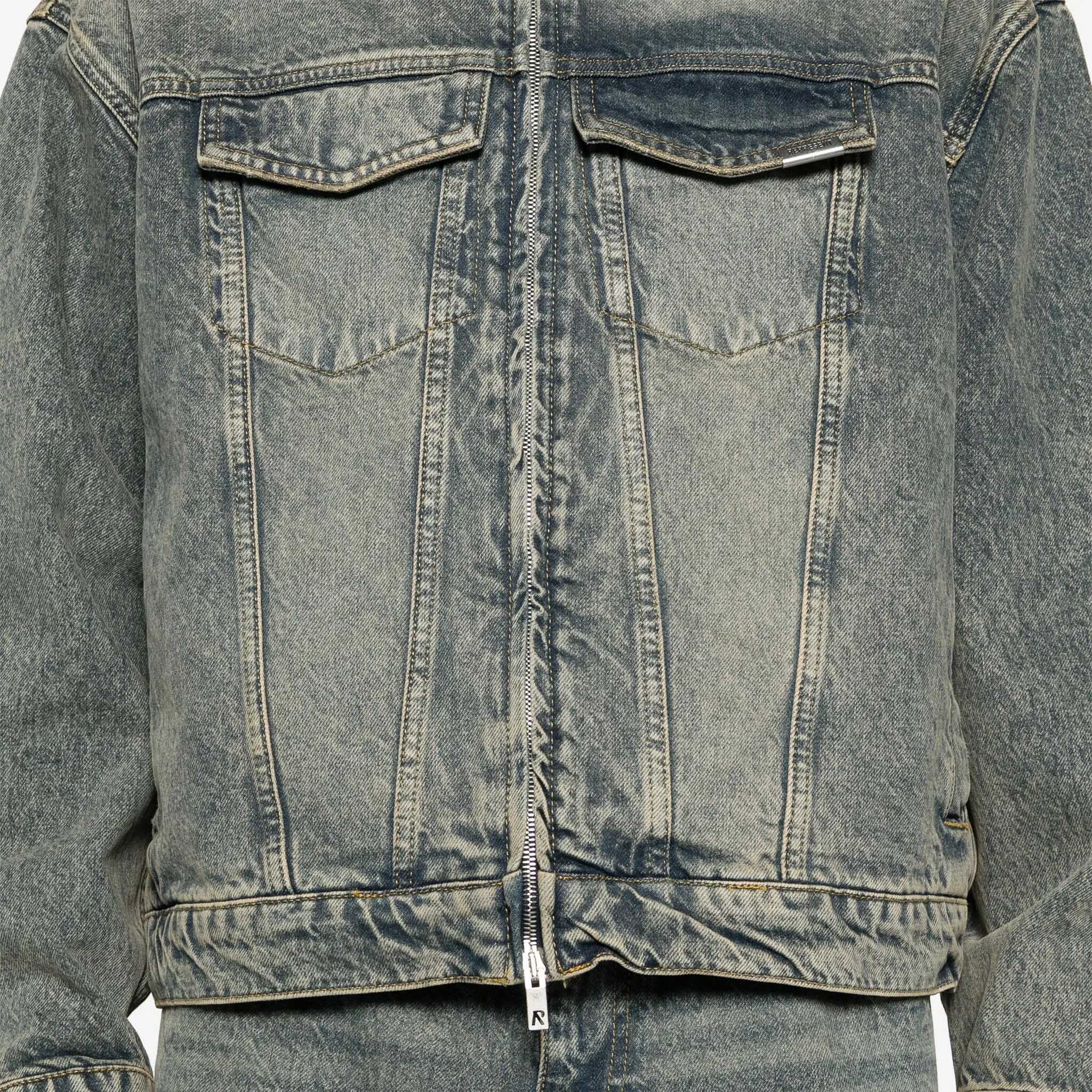 Vintage Zipper Denim Jacket for Men with Stone Washed Finish for Casual Fashion Bulk Supplier