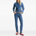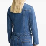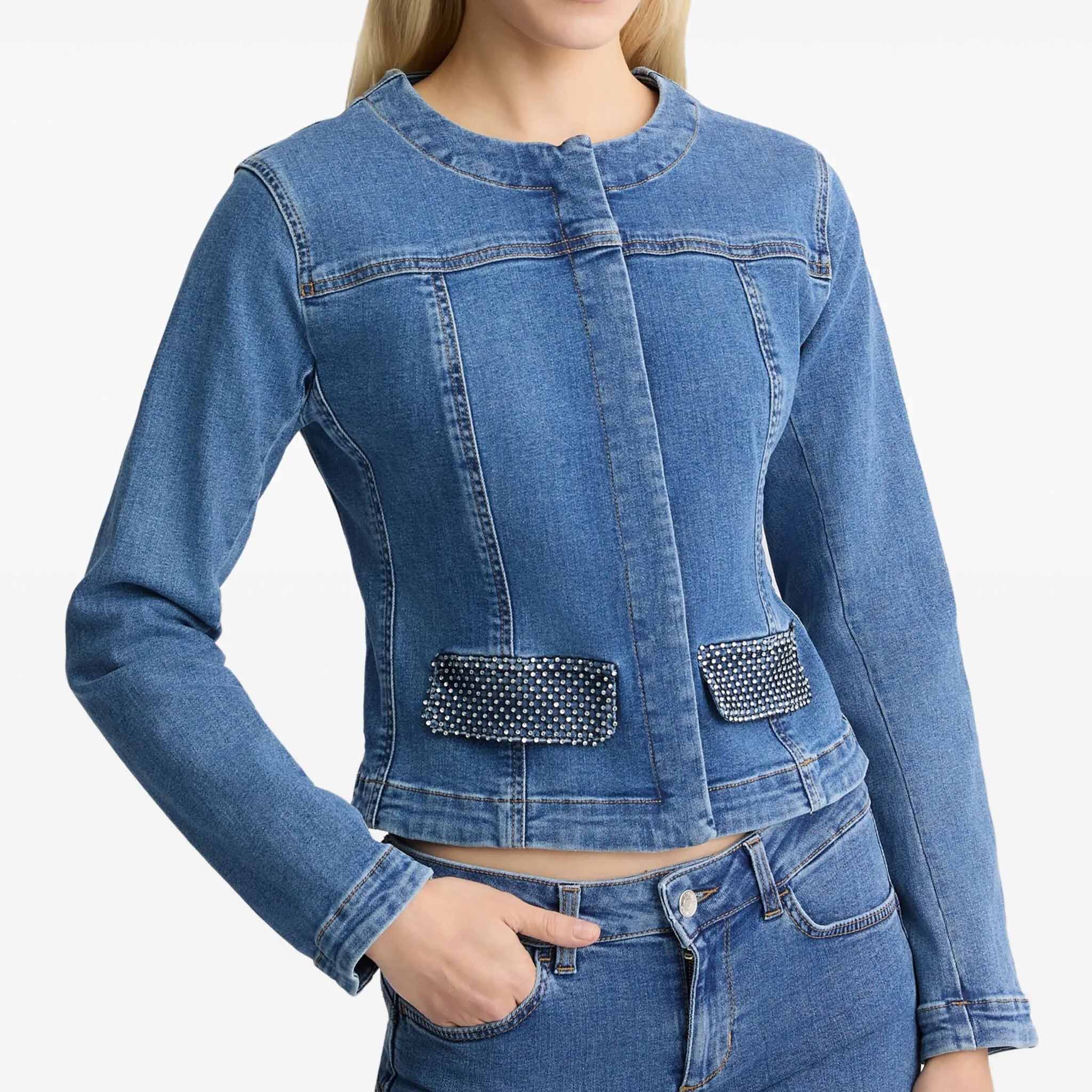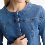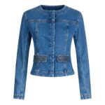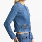 Slim Fit Cropped Denim Jacket Collarless Style with Modern Minimalist Design Structured Body Fit