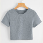 Women’s Crop Top Knitted T-Shirt Slim Ribbed Stretchy Short Sleeve Summer Casual Urban Street Fashion
